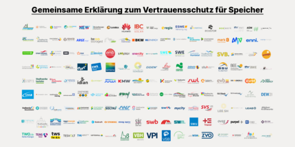 Unter den Zweitunterzeichnern der Erklärung finden sich große Energieversorger wie Vattenfall GmbH, die MVV Energie AG, die DEW21 Dortmunder Energie- und Wassersversorgung GmbH und die GASAG AG ebenso wie zahlreiche kleine und mittlere Stadtwerke, darunter die Stadtwerke Elmshorn GmbH, die Stadtwerke Esslingen am Neckar GmbH und die Stadtwerke Niesky GmbH. Darüber hinaus haben sich weitere Speicher- und erneuerbare Energien Projektierer wie ABO Energy, be.storaged und Enertrag genauso angeschlossen wie mit u.a. GLS Bank und re:cap global investors auch Finanzakteure.